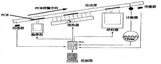 下面以雙波峰焊機(jī)的工藝流程為例,來說明波峰焊原理(見圖3-1)。