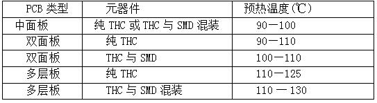 印制板預(yù)熱溫度和時(shí)間要根據(jù)印制板的大小、厚度、元器件的大小和多少,以及貼裝元器件的多少來確定。預(yù)熱溫度在90—130℃(PCB表面溫度),多層板及有較多貼裝元器件時(shí)預(yù)熱溫度取上限。預(yù)熱時(shí)間由傳送帶速度來控制。如預(yù)熱溫度偏低或和預(yù)熱時(shí)間過短,焊劑中的溶劑揮發(fā)不充分,焊接時(shí)產(chǎn)生氣體引 起氣孔、錫珠等焊接缺陷;如預(yù)熱溫度偏高或預(yù)熱時(shí) 間過長,焊劑被提前分解,使焊劑失去活性,同樣會(huì)引起毛刺、橋接等焊接缺陷。因此,要恰當(dāng)控制頂熱溫度和時(shí)間,最佳的預(yù)熱溫度是在波峰焊前涂覆在PCB底面的焊劑帶有粘性(見表3-1)。